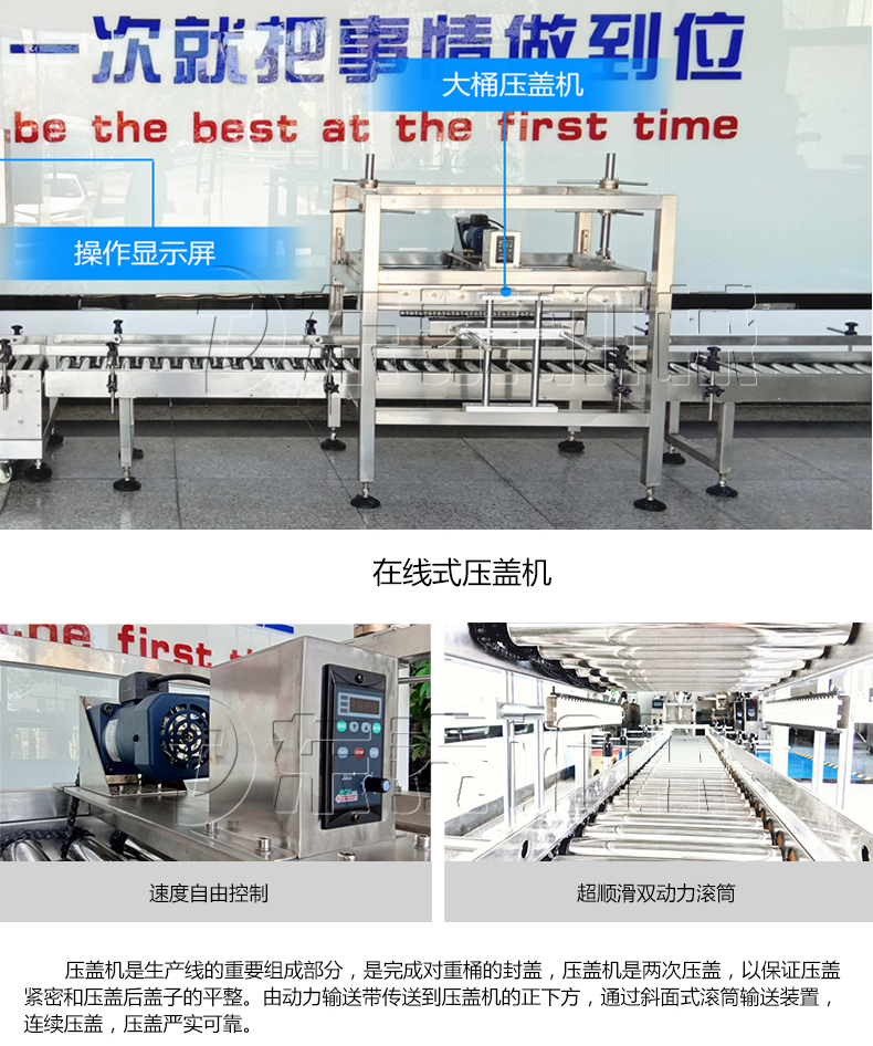 稱重式灌裝封口生產(chǎn)線為半自動(dòng)單頭稱重式灌裝機(jī)搭配在線式壓蓋機(jī),設(shè)備小巧、實(shí)用適合5-30KG敞口桶的灌裝(其它桶型可定制),灌裝時(shí)由人工放置空桶,并啟動(dòng)開始按鈕,待灌裝完畢后放蓋并將桶推岀灌裝位置,動(dòng)力滾筒自動(dòng)傳送至壓蓋杋進(jìn)行壓蓋。壓蓋完畢后可輸送至成品輸送機(jī)上完成整個(gè)操作過程,全程僅需一人即可完成整個(gè)生產(chǎn)過程。此型號(hào)灌裝機(jī)為客戶大大降低了生產(chǎn)勞動(dòng)成本,是大中小型液體灌裝企業(yè)的理想選擇。