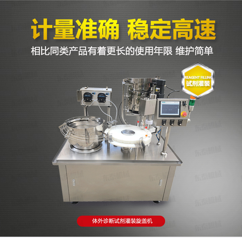 診斷試劑灌裝旋蓋一體機(jī)是在引進(jìn)和吸收國(guó)外技術(shù)的基礎(chǔ)上,由我公司自主研發(fā)的一款I(lǐng)VD診斷試劑灌裝旋蓋一體機(jī),能同時(shí)完成自動(dòng)理瓶、自動(dòng)上瓶、定量灌裝、自動(dòng)理蓋、上蓋和旋蓋封口等動(dòng)作。本機(jī)采用日本高精度封閉式凸輪分度工位器,精度高,運(yùn)行可靠,使用壽命長(zhǎng)。該分度器結(jié)構(gòu)簡(jiǎn)單,長(zhǎng)期使用無(wú)需維修。該型號(hào)設(shè)備主要用于ⅣD體外診斷試劑制藥、生物制藥行業(yè)及科研領(lǐng)域裝。機(jī)器設(shè)計(jì)緊湊合理、外形簡(jiǎn)潔美觀,灌裝量調(diào)節(jié)方便。